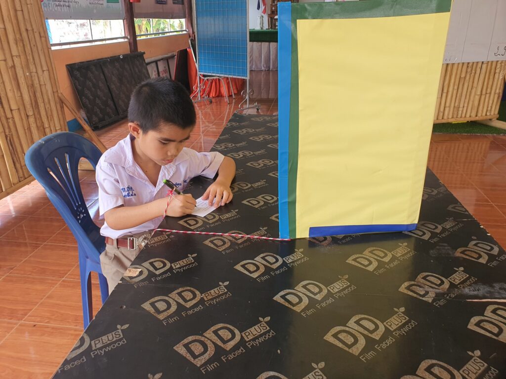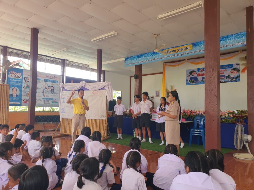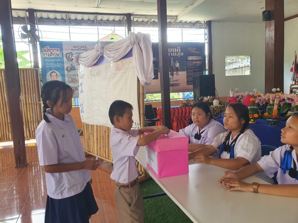 โรงเรียนบ้านหลังนำโดยนายลีน จันทะนะ ผู้อำนวยการโรงเรียนบ้านสามหลัง พร้อมด้วยคณะครูและนักเรียน จัดกิจกรรมการเลือกตั้งสภานักเรียน การใช้สิทธิเลือกตั้งสภานักเรียนเป็นการแสดงออกซึ่งประชาธิปไตยในระดับโรงเรียน โดยนักเรียนแต่ละคนมีสิทธิเลือก ผู้ที่ตนเห็นว่าเหมาะสมที่สุดเพื่อเป็นตัวแทนในการบริหารและพัฒนาโรงเรียน การเลือกตั้งสภานักเรียนเป็นการฝึกฝนให้เกิดจิตสำนึกในการมีส่วนร่วมทางการเมือง และการมีส่วนร่วมในการตัดสินใจ ซึ่งเป็นพื้นฐานสำคัญของการเป็นพลเมืองที่ดี