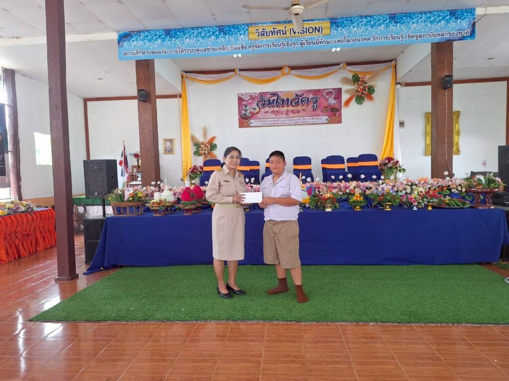 โรงเรียนบ้านสามหลัง ขอขอบคุณคุณครูจินดารัตน์ ปัญญา ท่านได้มอบทุนการศึกษาทุนละ 500 บาท ให้กับนักเรียน ระดับอนุบาล ทุกคนและตัวแทนนักเรียนทุกระดับชั้นชั้นละ1คนเนื่องในวันไหว้ครูปีการศึกษา2568